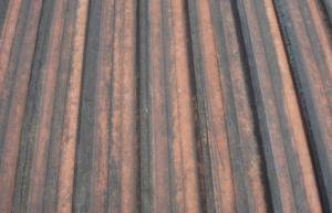 Roof cleaned with wet grit blast special roof cleaning machine.
